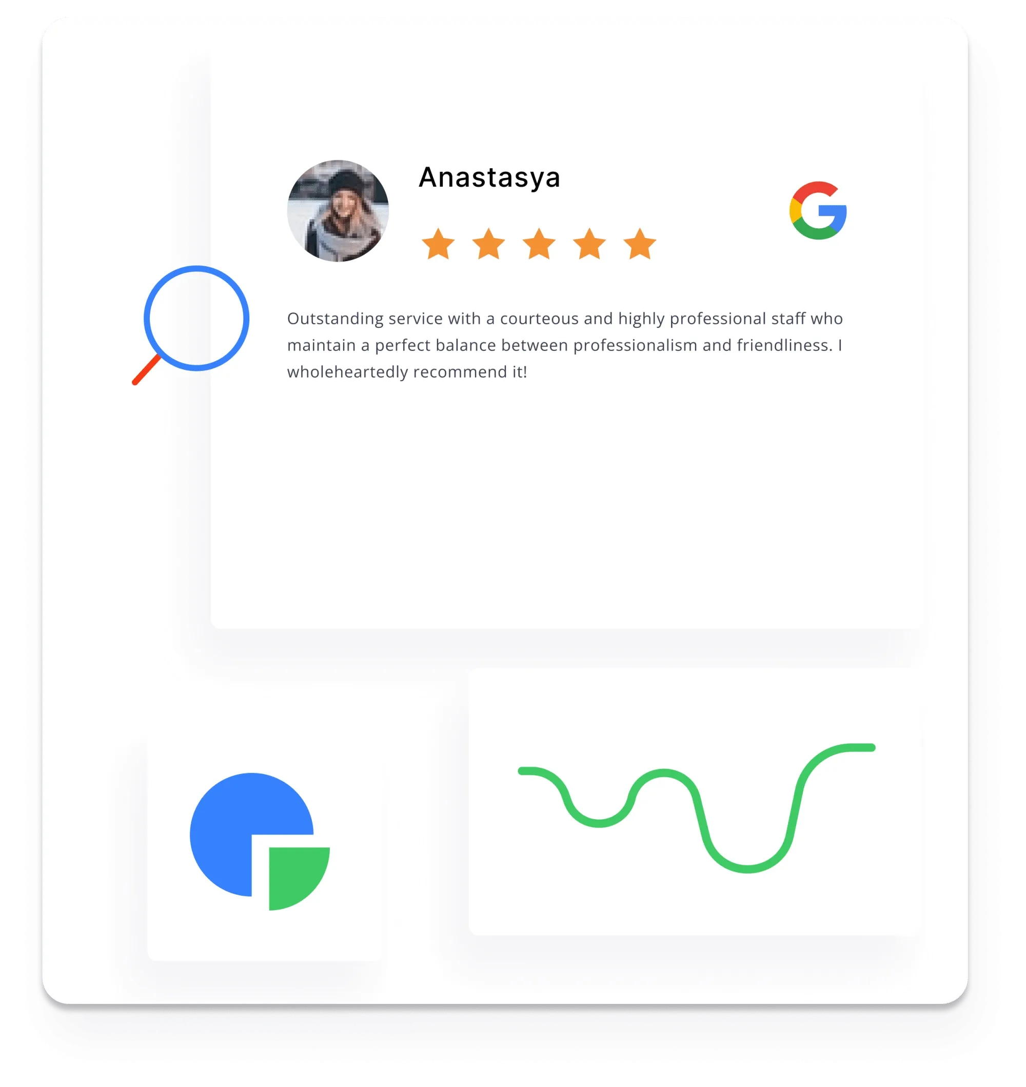 Keep track of all your reviews in one spot. You’ll get alerts whenever someone rates or reviews your business, letting you quickly deal with any bad comments. Our tool makes sure you always see what your customers are saying.