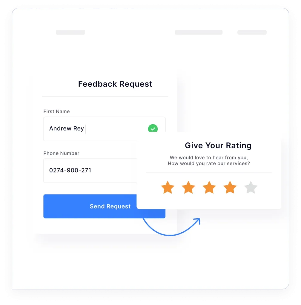Automate your review collection process by effortlessly gathering feedback through SMS or email with our advanced review generation tool.